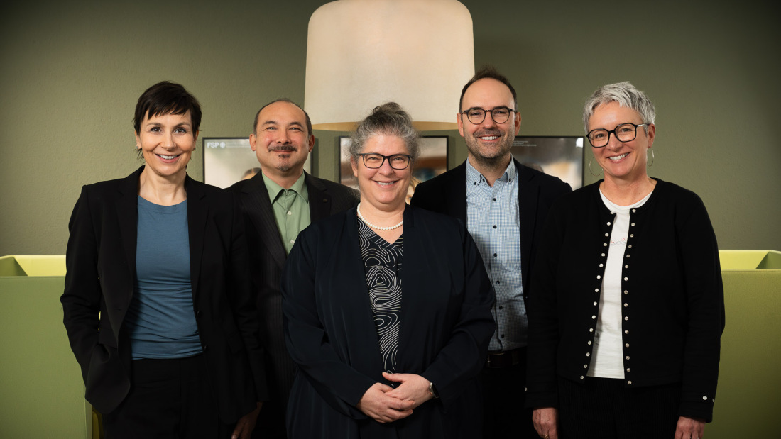 Von links nach rechts: Snezana Blickenstorfer (Leiterin Recht und Finanzen, Stv. Direktorin), Michel Selinger (Leiter Informatik und Digitalisierung), Muriel Brinkrolf (Direktorin), Jean-Baptiste Mauvais (Leiter Weiter- und Fortbildung), Cathy Maret (Leiterin Berufspolitik und Kommunikation)